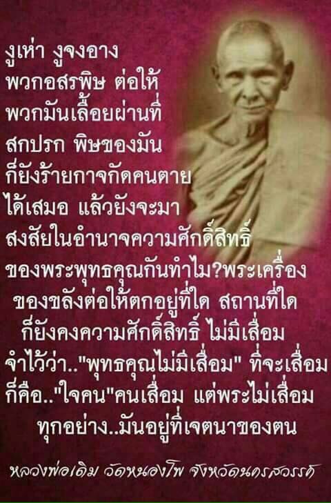 พระเครื่องของขลังต่อให้ตกอยู่ที่ใด สถานที่ใด ก็ยังคงความศักดิ์สิทธิ์ ไม่มีเสีอม จำไว้ว่า พุทธคุณไม่มีเสี่อม ที่จะเสื่อมคือ ใจคน คนเสื่อม แต่พระไม่เสื่อม ทุกอย่าง มันอยู่ที่เจตนาของตน